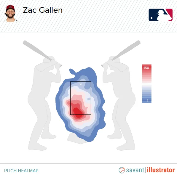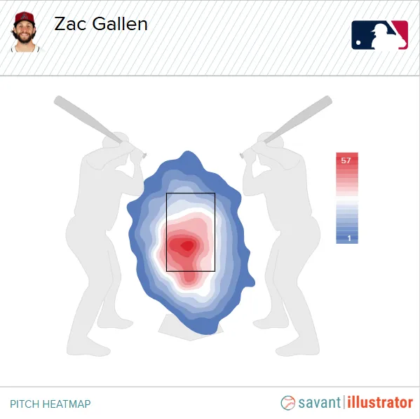 ...Looking at Gallen's heatmap from last season, it makes sense as to why he conceded so many home runs. The majority of his pitches were thrown right in the wheelhouse that every batter dreams of when they step to the plate. Gallen consistently hit the prime location that every batter wants their pitcher to land it in during the Home Run Derby.