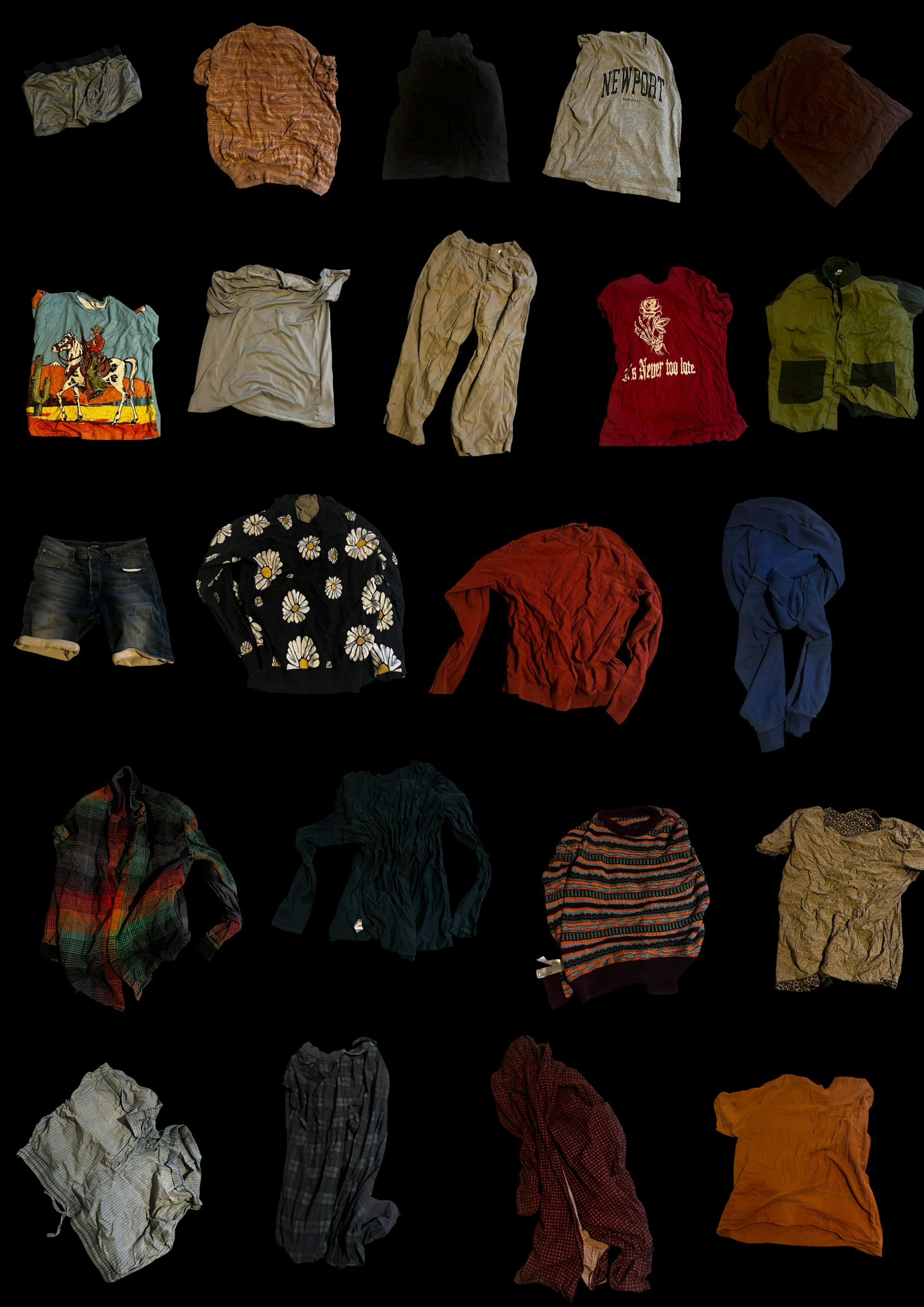 Each garment became a portal to an often candid story and an opportunity for self rediscovery through these hanged and folded moments. Very few items survived my own wardrobe study as most were redirected to charity shops after realising they were impulse buys or mostly ill-considered purchases that didn’t meet my needs. Most garments held strong family connections or were linked to a personal memory.