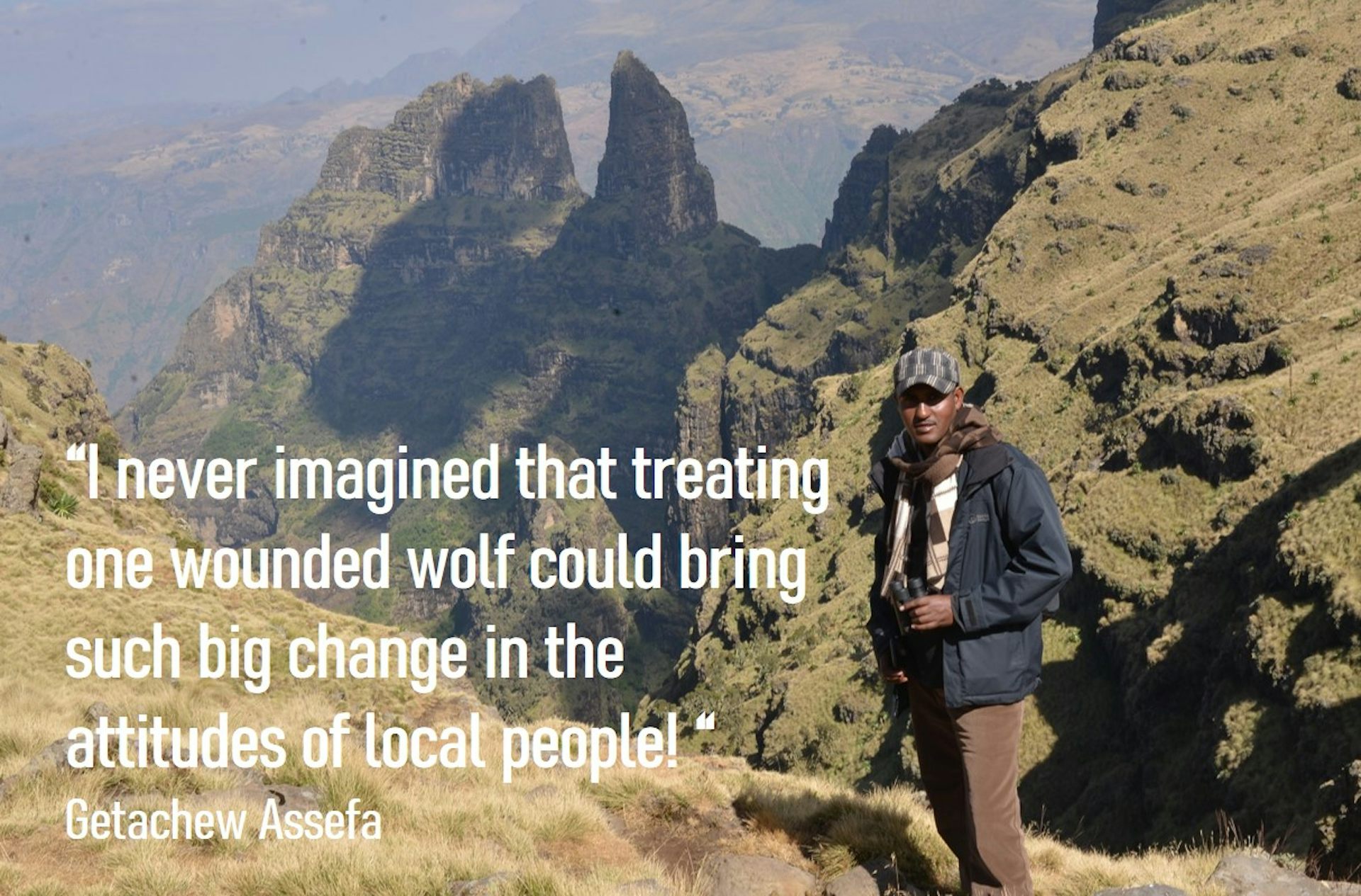 At first, villagers were surprised to see a wolf near their homes and tried to chase him away. But wolf monitors, led by Getachew and Chilot, explained Terefe’s story of survival.