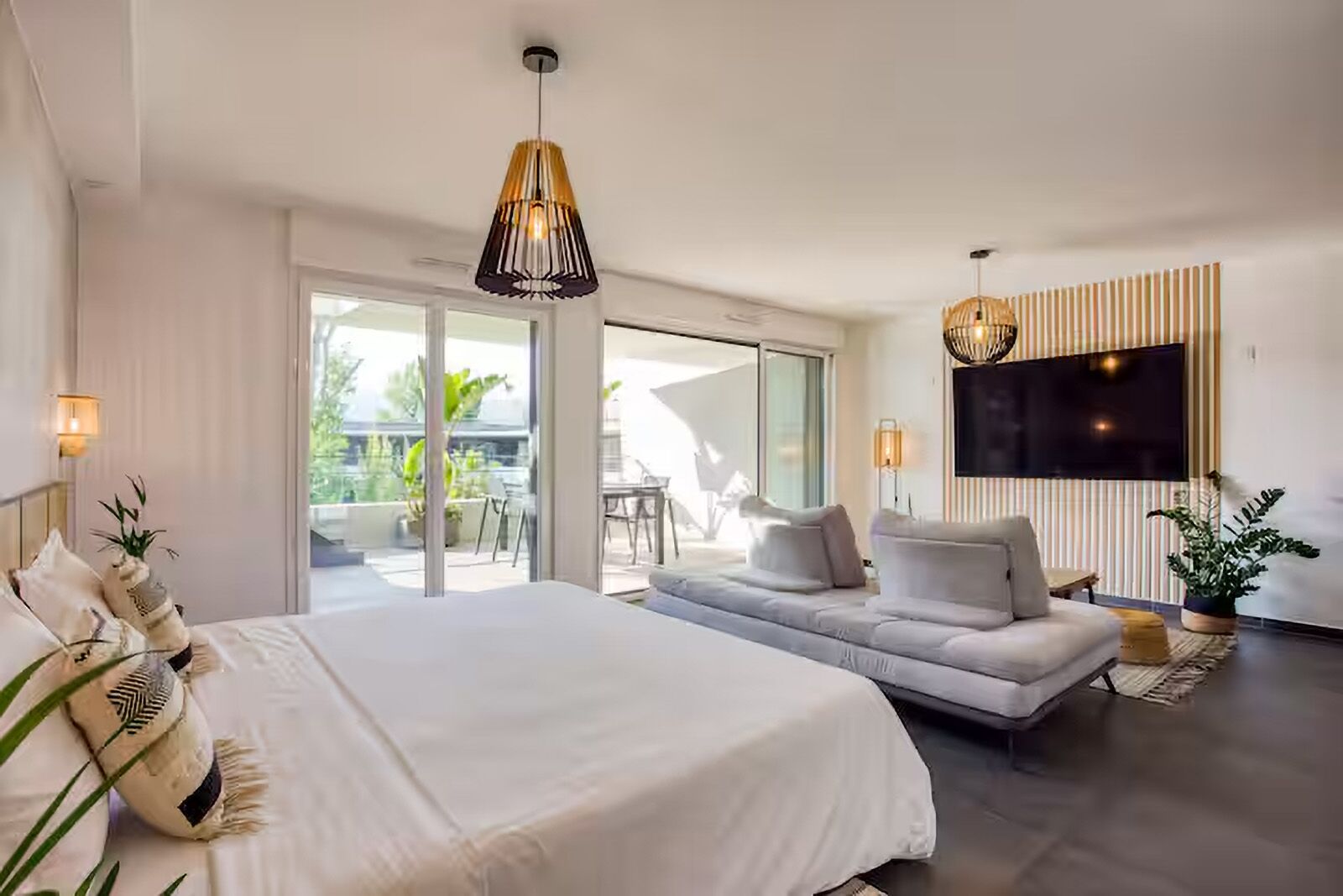 The listings in Montpellier are compact and cheap but certainly don’t skimp on city views. This guesthouse sleeps four right in the heart of the city, close to the tram station (which will take you to the beach), the city’s markets, and museums (only a 10-minute walk away). The rental has a garden and pool on-site and is built and designed in a manner that encapsulates the city’s historic charm.