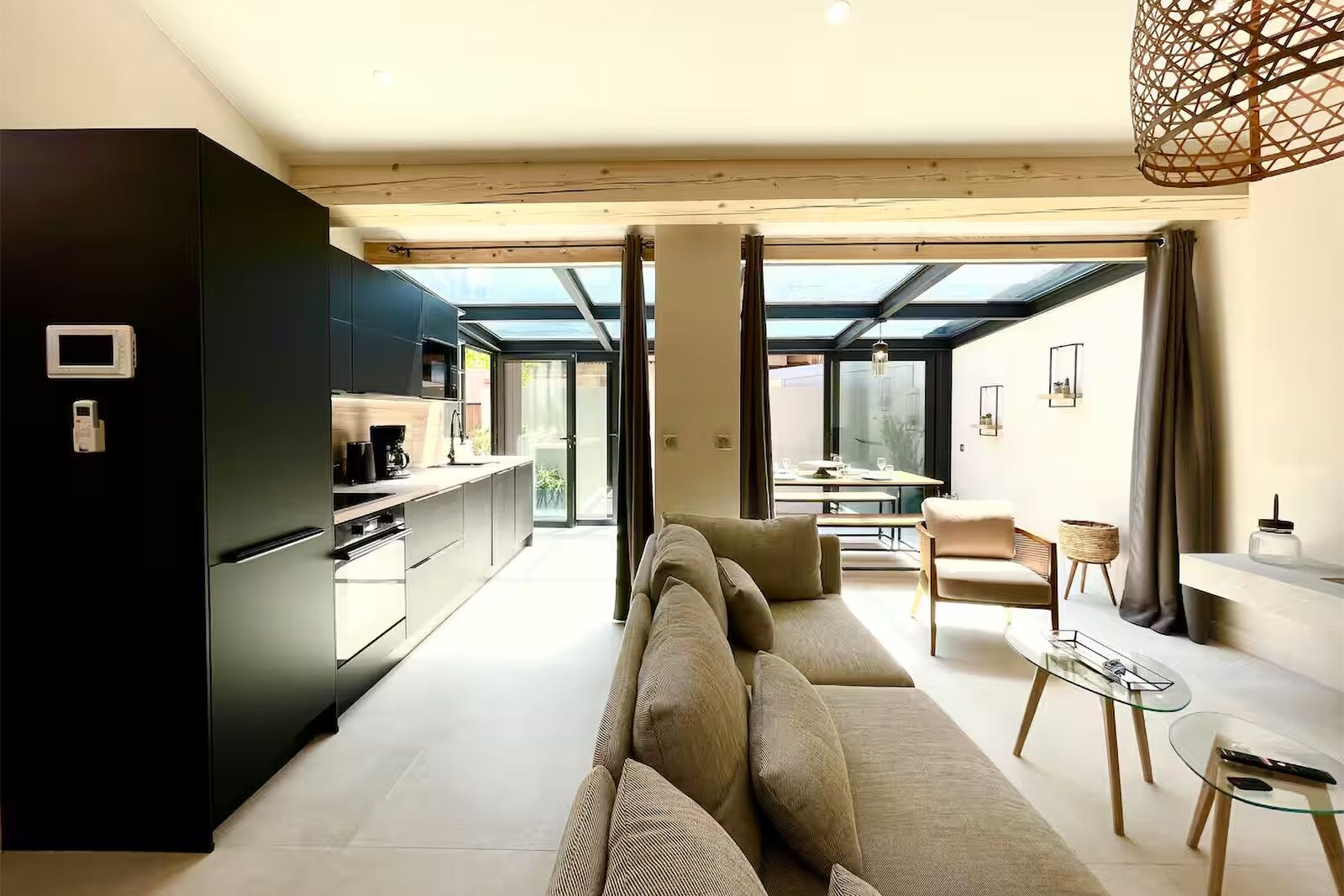 See more photosThis ultra-chic maisonette on the Côte d’Azur has a glass-roofed kitchen which means you can top up your vitamin D while preparing coffee. Its prize feature is a secluded backyard with a private plunge pool, perfect for cooling off on a hot summer’s day. The unit has everything necessary for cooking, with one proper bedroom and an extra bed in the loft, which is great for kids. The beaches and restaurants of Antibes are a five-minute walk.