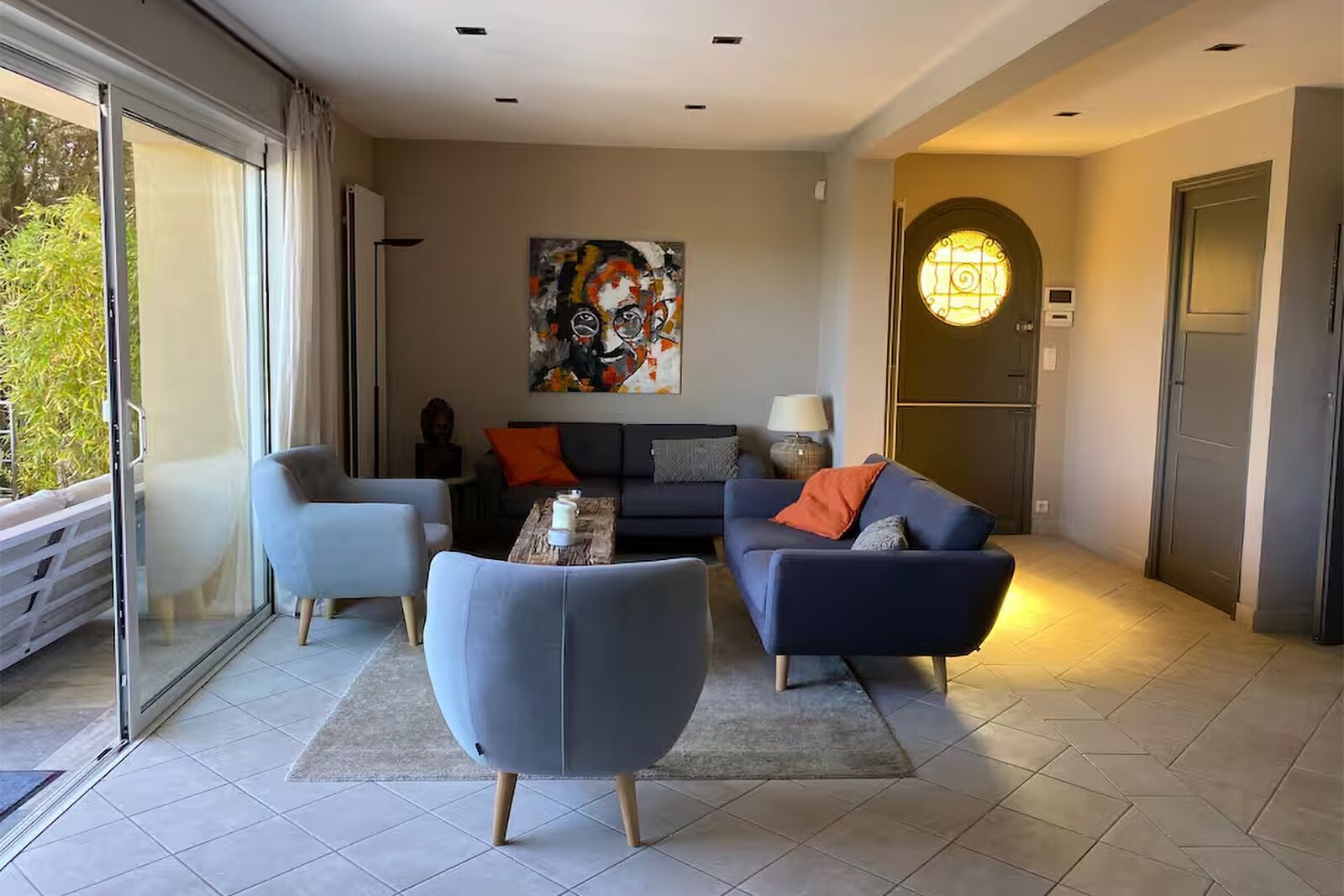 See more photos Get a taste of red-carpet living at this ultra-luxe Airbnb in the French Riviera with two swimming pools and views for days. Highlights include a sunken den in the main lounge and personal terraces affixed to all bedrooms. Two of these are housed in a separate annex for added privacy. The closest neighbours are a mile away and the host can arrange breakfast, a private chef, and housekeeping upon request.
